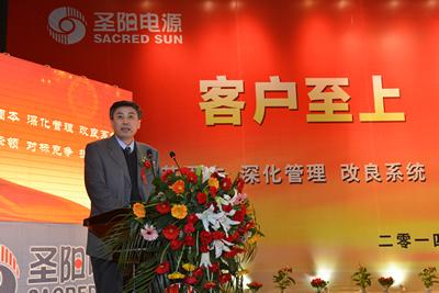 2014年1月19日,圣阳公司2013年度表彰暨迎新春联欢大会在曲阜孔子文化会展中心拉开帷幕。会场舞台上“客户至上,员工为本”八个大字主题词分外醒目,火红侧屏上“骏马迎春,奋志圣阳”的标语催人奋进。下午1时58分,在喜庆欢快的音乐声中,大会正式拉开帷幕,会议由总经理高运奎主持,董事长在会上发表重要讲话,公司员工、离退休老干部1500余人参加会议。