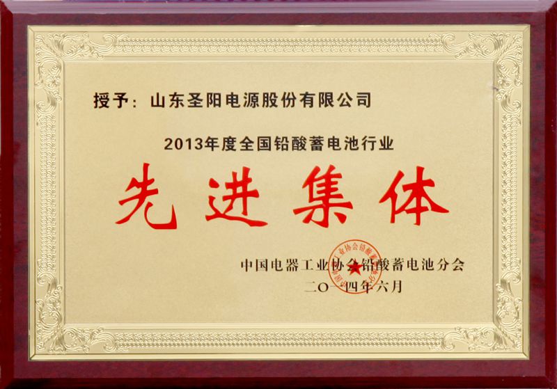 2014年6月14日至16日,中国电器工业协会铅酸蓄电池分会第七届四次会员大会暨四次理事会在西安召开。会上,圣阳电源被授予2013年度全国铅酸蓄电池行业先进集体称号,董事长宋斌被授予2013年度全国铅酸蓄电池行业优秀企业家称号。