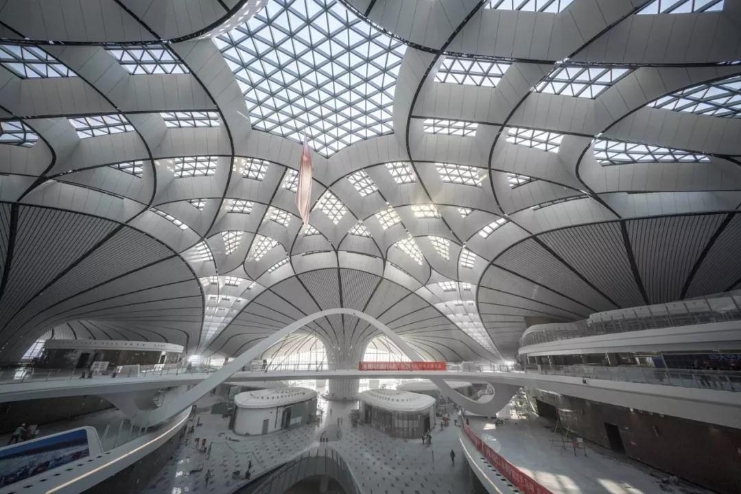 北京大兴国际机场,宛如一只展翅欲飞的“金凤凰”。