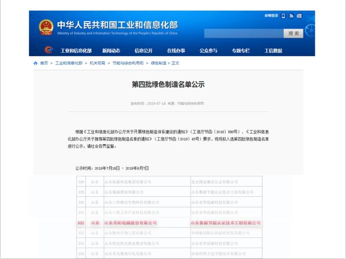 近日,工业和信息化部公布第四批绿色制造名单,圣阳电源入选绿色工厂名单。