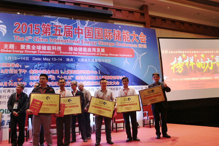 2015年5月13日,2015第五届中国国际储能大会暨展览会在上海拉开帷幕,此次大会汇聚了储能领域的众多专家,包括国家能源局、科技部、发改委能源研究所、工信部、国家电网、南方电网、五大发电集团新能源公司、科研院校及企业代表等权威人士1000余人。会上,2015中国储能产业最具影响力评选活动结果揭晓,圣阳电源荣获中国储能产业最具影响力企业奖;同时大会宣布中国储能化学与物理电源行业协会储能应用分会正式成立,圣阳电源被选举为副理事长单位。