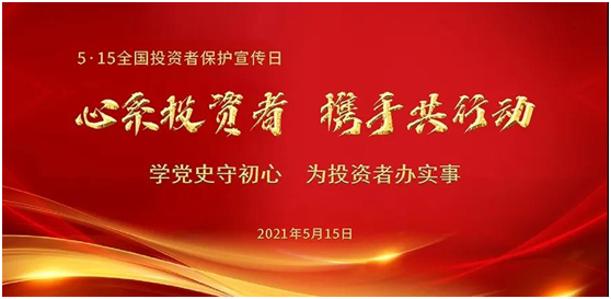 “心系投资者 携手共行动——学党史守初心 为投资者办实事”,为进一步倡导理性投资文化,凝聚市场各方共识,形成人人关心、关爱、关注中小投资者合法权益的良好氛围,让投资者保护理念深入人心,中国证监会将每年5月15日定为“全国投资者保护宣传日”。