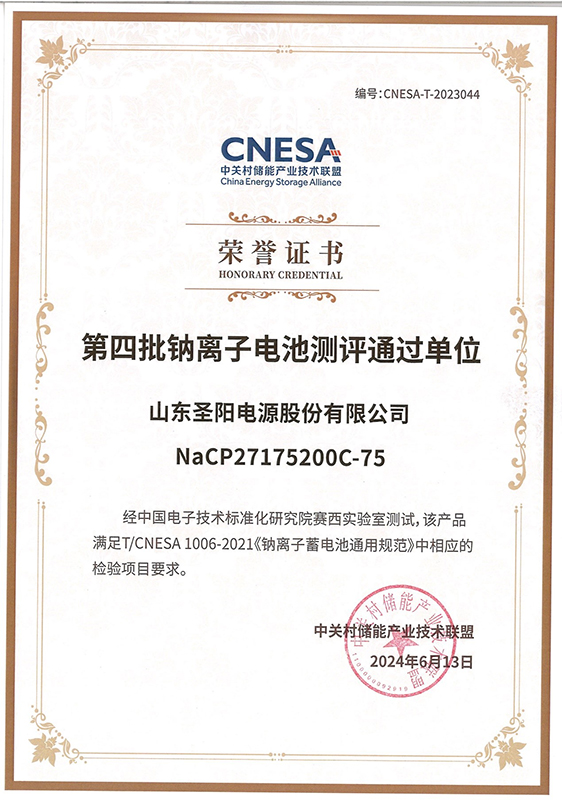 本次测评由工信部中国电子技术标准化研究院赛西实验室依据中关村储能产业技术联盟团体标准T/CNESA 1006—2021《钠离子蓄电池通用规范》开展权威检测,对电池的高低温电性能、倍率放电性能、快速充电性能以及短路、强制过放电、重物冲击、挤压、热滥用等电性能和安全性能进行检测验证,圣阳股份钠电池产品满足标准中相应的检验项目要求,产品稳定可靠的性能得到权威机构认可,这将有助于提升公司综合市场竞争力。